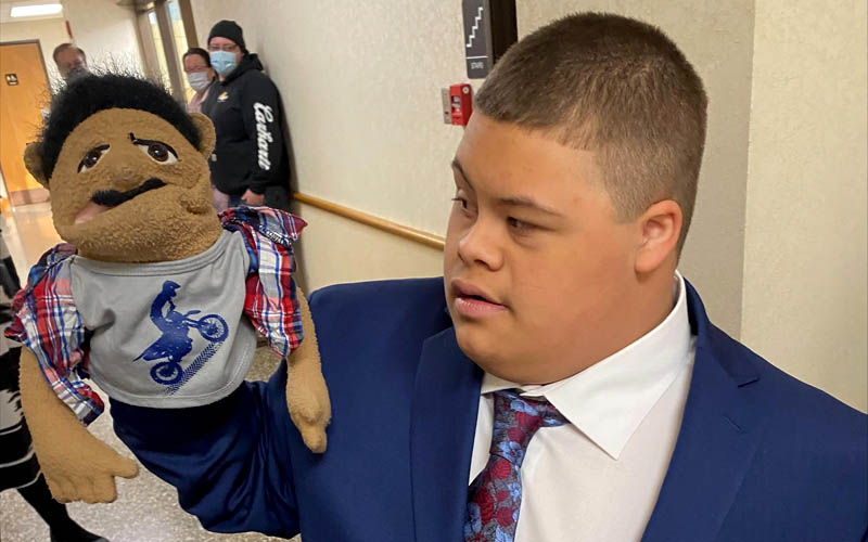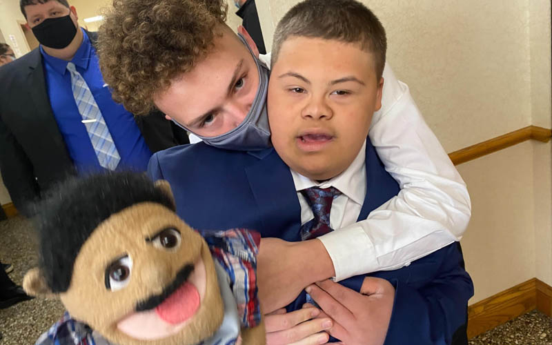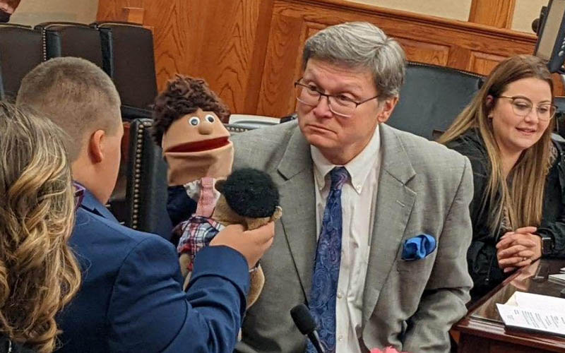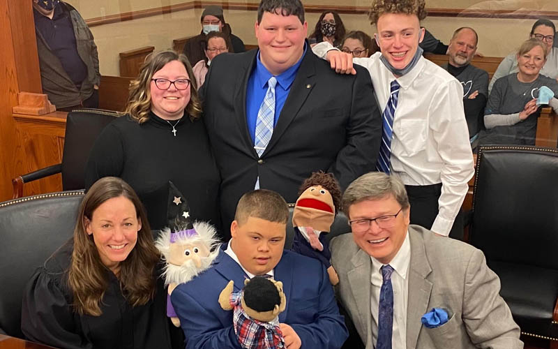 West Virginia adoption attorney Bob Noone recently worked with a 12 year old young man with severe Downs syndrome who would only talk through a puppet. So Bob asked the Judge in advance if he could do the hearing "in puppet" and she agreed (even brought her a puppet!). As you can see from the photos, it was one of those truly magic moments...