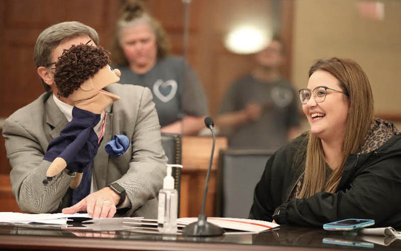 West Virginia adoption attorney Bob Noone recently worked with a 12 year old young man with severe Downs syndrome who would only talk through a puppet. So Bob asked the Judge in advance if he could do the hearing "in puppet" and she agreed (even brought her a puppet!). As you can see from the photos, it was one of those truly magic moments...